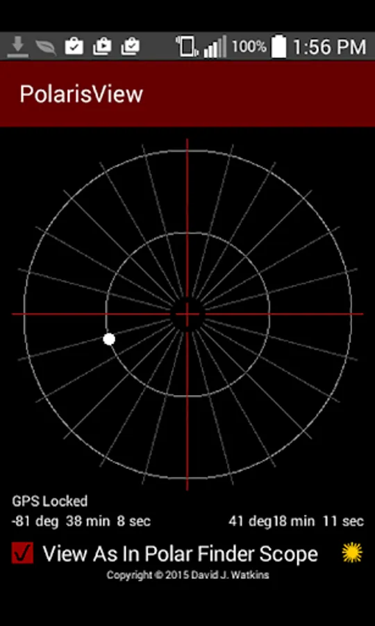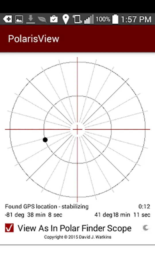 An app for Astronomy and Astrophotography enthusiasts that use a German Equatorial Mount for your telescope. PolarisView is a useful utility to assist you while you align your GEM or equatorial mount for your telescope for your astronomy viewing session or for your night of astrophotography. PolarisView will place Polaris on the screen display of your device exactly as you should see it in your polar finder scope. Once you adjust your GEM mount so that the view in your polar finder scope matches the screen display, you are polar aligned for viewing the night sky! The alignment will even get you close enough for short exposure astrophotography as well! For your astronomy viewing sessions, your motorized mount should keep your object in the view all night long! Note that while this application will run on devices in the Southern Hemisphere or near the Equator, you will not be able to use the application to align your mount since Polaris will be below the horizon.