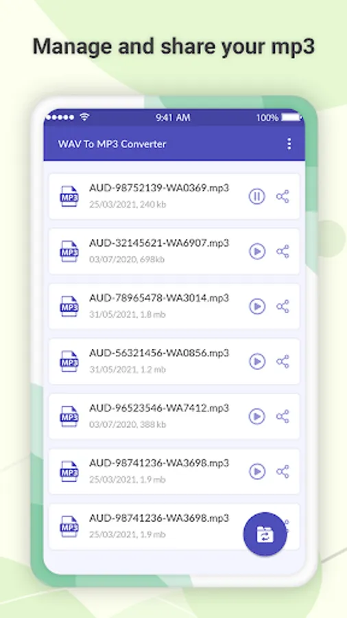 WAV To MP3 Converter app is a free, Superfast converter, simple and easy to use.