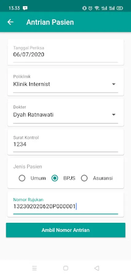 3. The Clinic Registration feature with the check date and destination of the selected doctor can be done directly online anywhere.