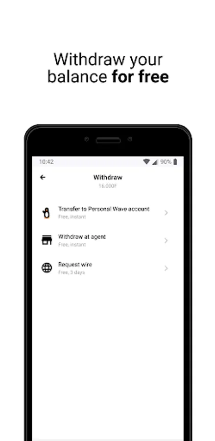 🤑 Withdraw your balance for free to your Wave wallet, at any Wave agent or by wire transfer
