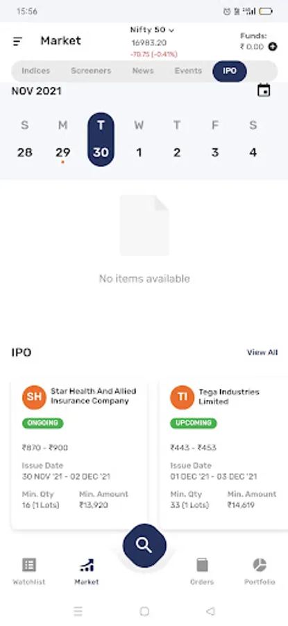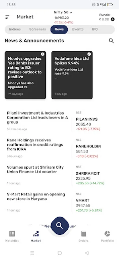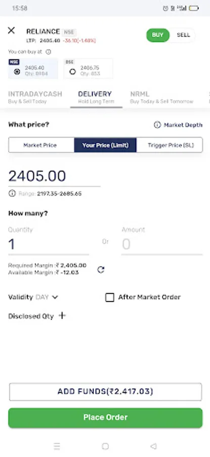 * Place Orders in few taps with minimum required inputs from user for order creation. User can select from various product types like Margin, Delivery, Intraday etc.