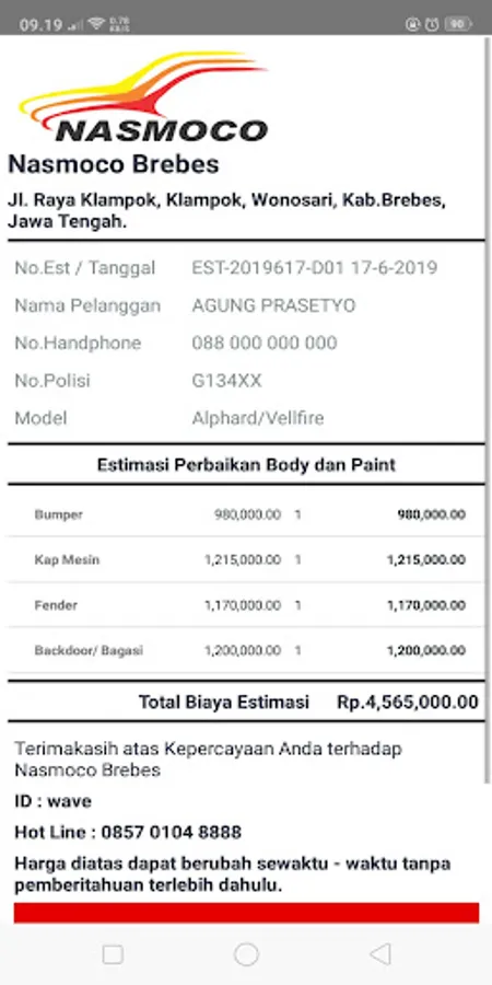 Application for Estimating BP Repair Services - Nasmoco Brebes