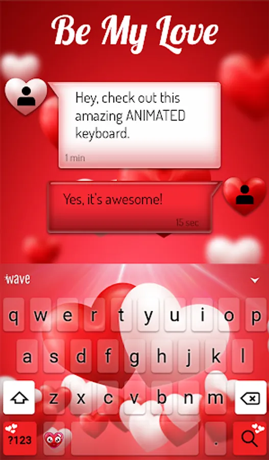 Be My Love Animated Keyboard + Live Wallpaper is an awesome personalization app that gives your Android phone a stylish new look. Wave cool wallpapers and keyboards apps help revamp a device in just 3 steps: