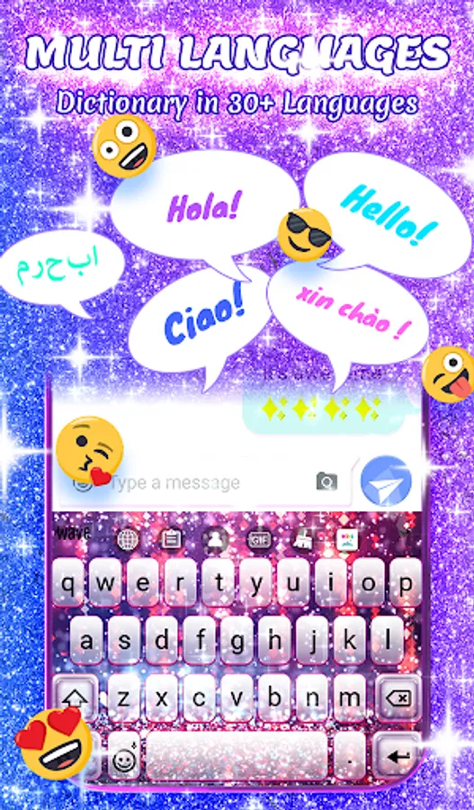 The custom keyboard design with animated graphics is a great match for the cool live wallpaper. This keyboard makes writing fun with rich communication features. First, you have an amazing design of your choice for visual delight. Customize along with fonts, vivid colors and funny sounds just the way you like it. Over 800 emojis are available to express emotions easily using the colorful keyboard background. If you are a GIF fan, you’ll love the collection linked to Wave Animated Keyboard. Plus, you can even create an instant GIF to reveal your thoughts. On top of good looks and fun ways to communicate, Wave Animated Keyboard offers some smart writing tools. The auto-correct feature supports over 20 languages. Your hands are free to do something you enjoy more than writing using the voice input option:
