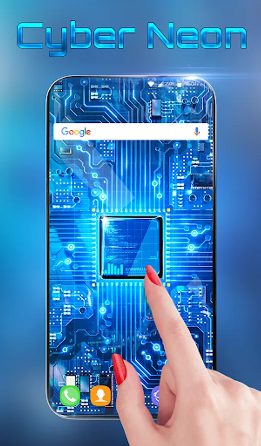 The custom call screen design is the final touch of our free theme Cyber Neon Animated Keyboard + Live Wallpaper. Fans of moving backgrounds love this cool dynamic twist. Try this option for a full Android custom look!