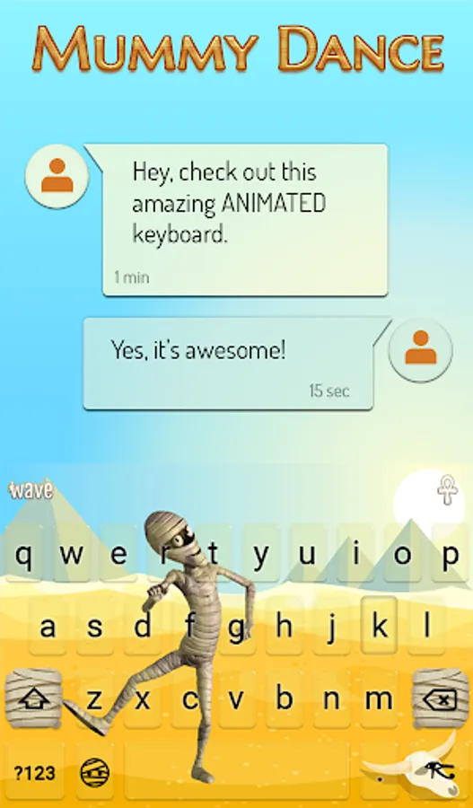 Mummy Dance Animated Keyboard + Live Wallpaper is an awesome personalization app that gives your Android phone a stylish new look. Wave cool wallpapers and keyboards apps help revamp a device in just 3 steps: