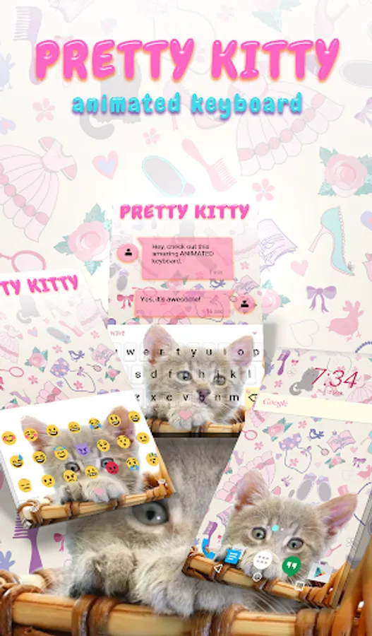 🙌 Pretty Kitty Animated Keyboard + Live Wallpaper combines stunning graphics with beautiful animations for a complete phone makeover. Enjoy the amazing graphics and cool animation... it is FREE and easy to install. 🙌