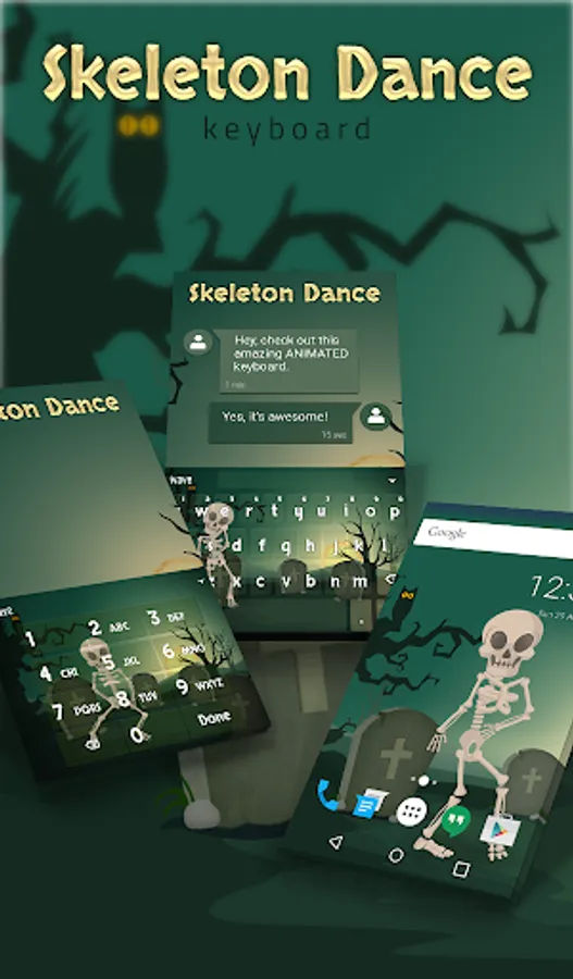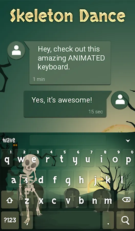 Skeleton Dance Animated Keyboard + Live Wallpaper is an awesome personalization app that gives your Android phone a stylish new look. Wave cool wallpapers and keyboards apps help revamp a device in just 3 steps: