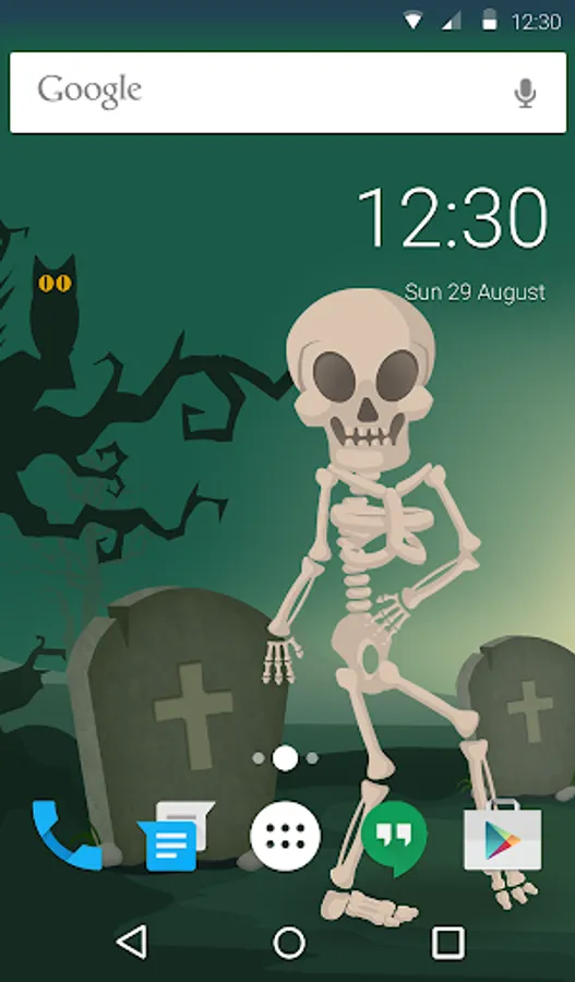 The custom call screen design is the final touch of our free theme Skeleton Dance Animated Keyboard + Live Wallpaper. Fans of moving backgrounds love this cool dynamic twist. Try this option for a full Android custom look!