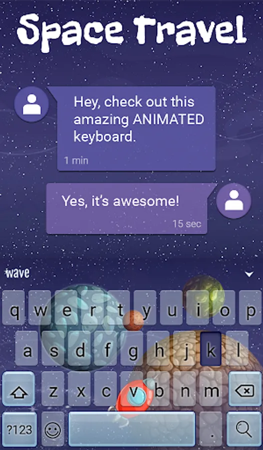 The custom keyboard designed with animated graphics is a great match for the cool live wallpaper. This keyboard makes writing fun with rich communication features. Firstly, you have an amazing design of your choice for visual delight. Customize along with fonts, vivid colors, and funny sounds just the way you like it. Over 800 emojis are available to express emotions easily using the colorful keyboard background. If you are a GIF fan, you’ll love the collection linked to Wave Animated Keyboard. Adding to this, you can even create an instant GIF to reveal your thoughts. On top of good looks and fun ways to communicate, Wave Animated Keyboard offers some smart writing tools. The auto-correct feature supports over 20 languages. Your hands are free to do something you enjoy more than writing using the voice input option: