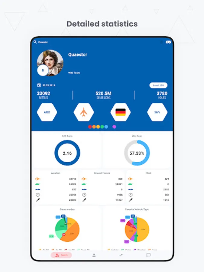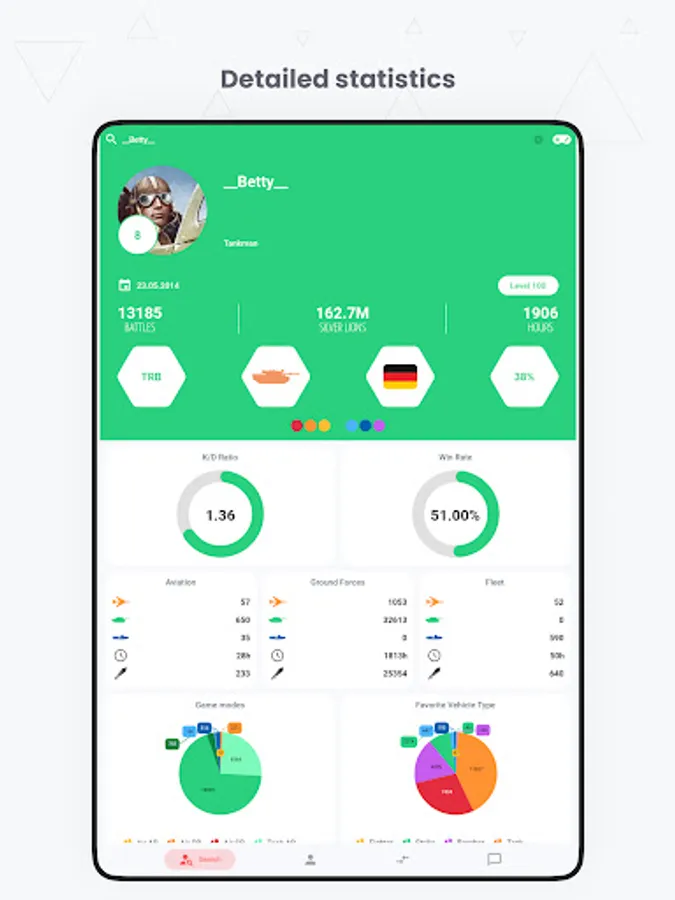 - Sign up date, num of battles, spent time, lions earned, etc.