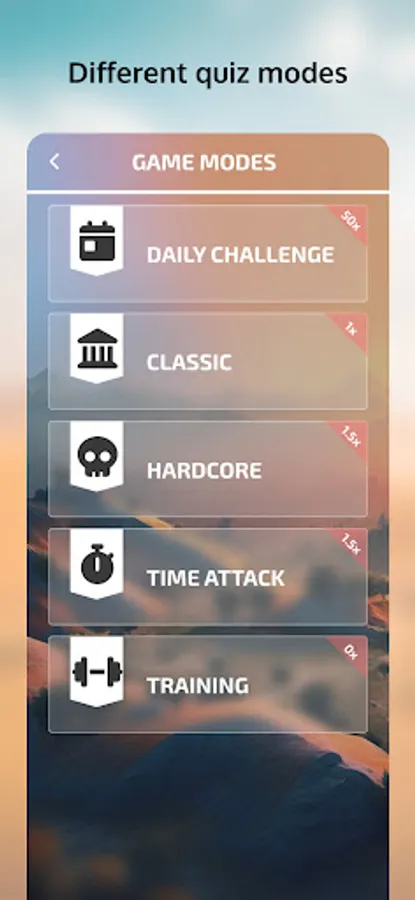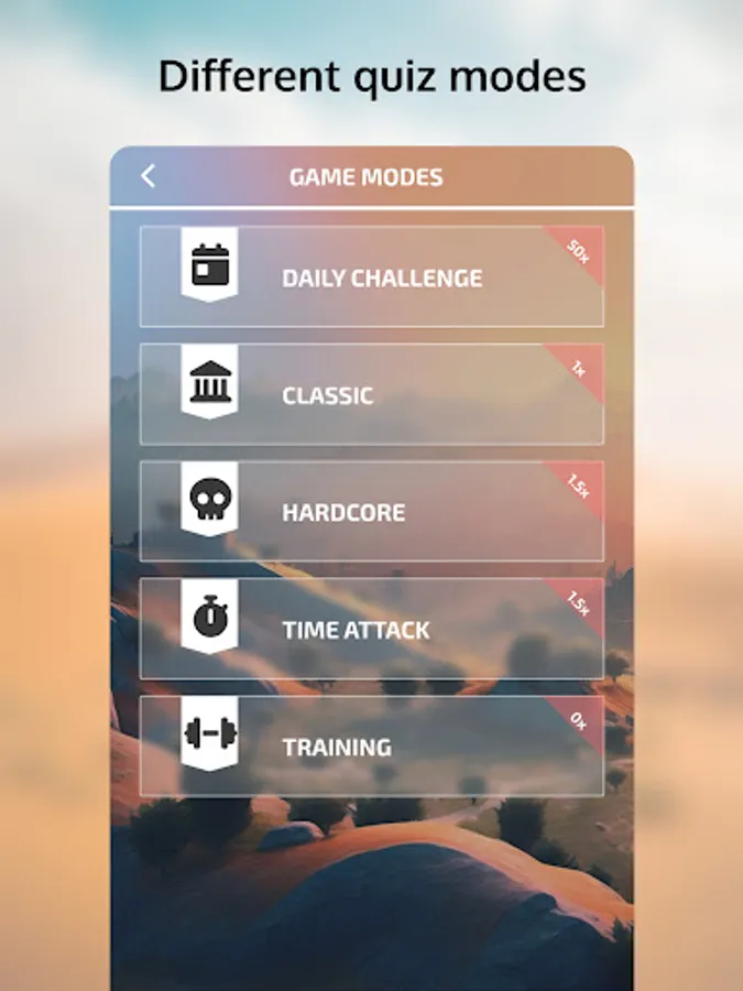 In the Daily Challenge, you'll get to guess modern tanks. In Classic mode, levels are opened one by one, offering a gradual increase in difficulty. Hardcore mode gives you only one life, making the game incredibly challenging. Time Attack mode gives you unlimited lives, but you have to answer as many questions as possible in a limited time. The Training mode offers a no-pressure, no-coin-earning opportunity to perfect your tank knowledge.
