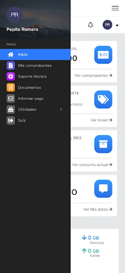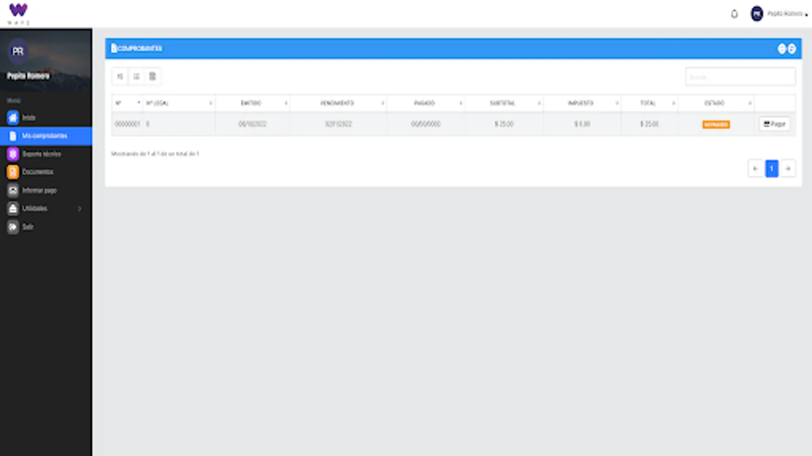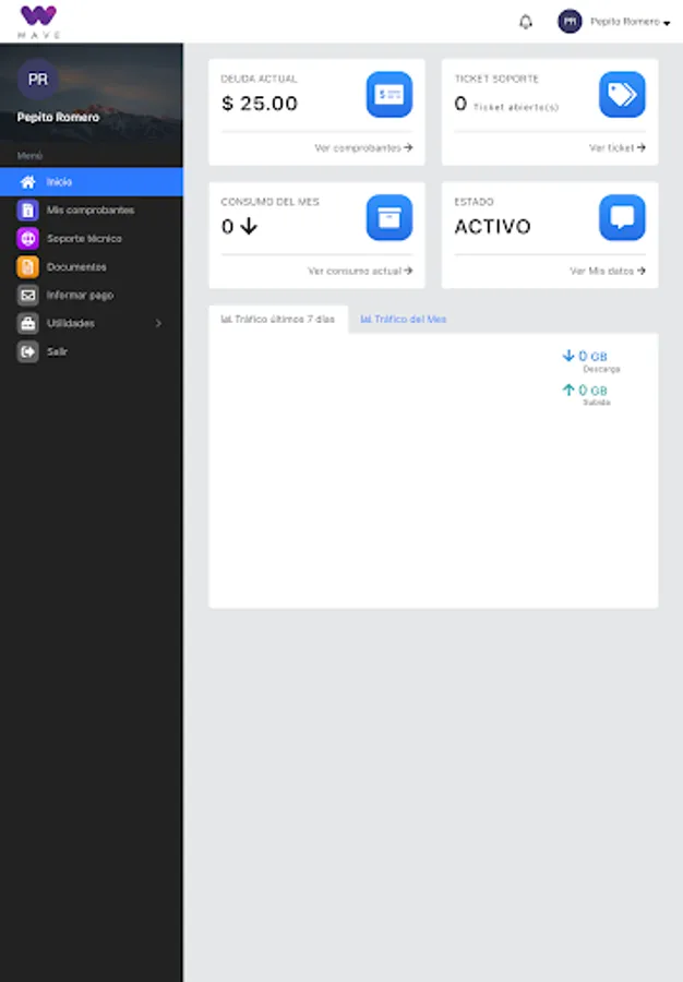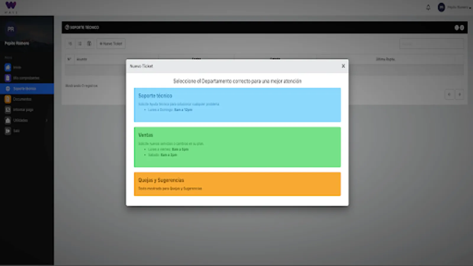 Here you can review your payment receipts, download your invoices, report network problems, view your internet consumption, open a support ticket, among other functions.