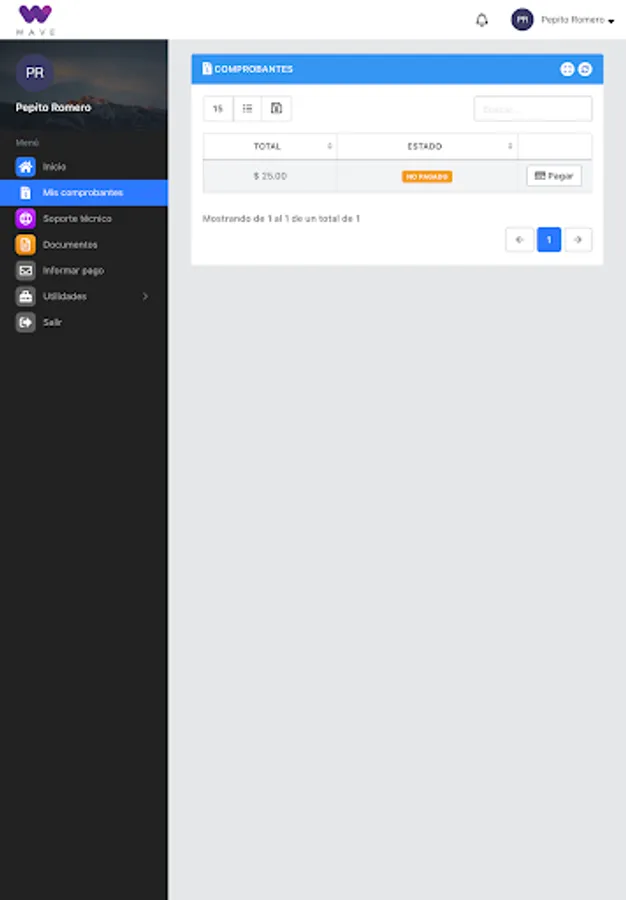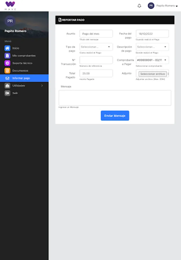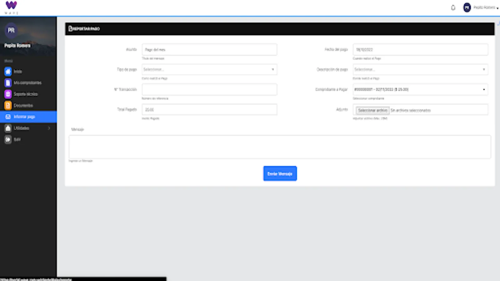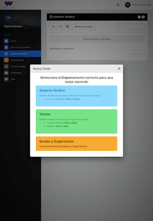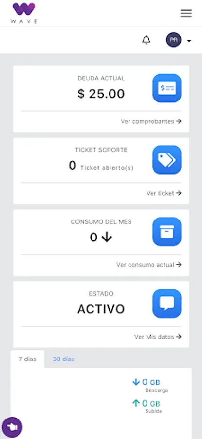 Here you can review your payment receipts, download your invoices, report network problems, view your internet consumption, open a support ticket, among other functions.