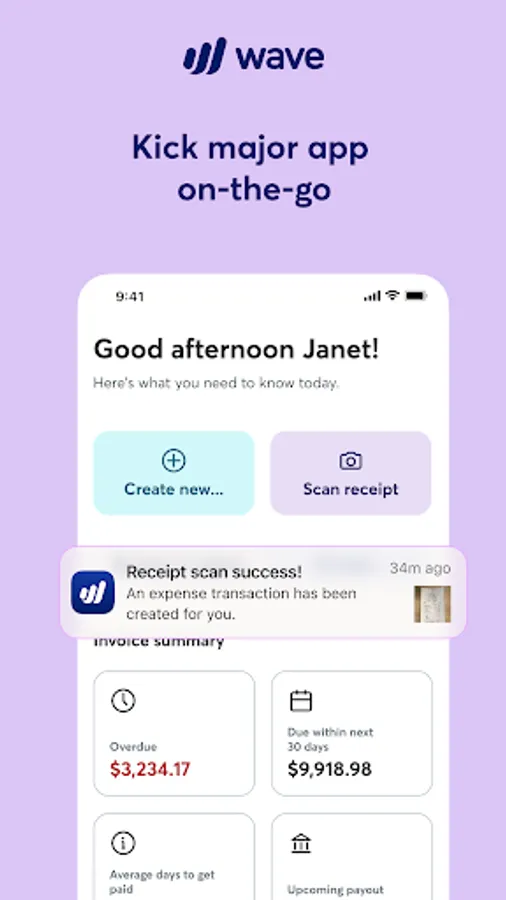 Wave’s mobile app is an integrated, on-the-go solution for small business owners, creators, freelancers, consultants, and contractors in the US and Canada. Send customized, professional invoices and estimates and keep track of your business expenses in one place! Add optional credit card and bank payment processing to get paid even faster. Plus, subscribe to our mobile receipts feature with optical character recognition to easily organize and track your business expenses—without all the paper.