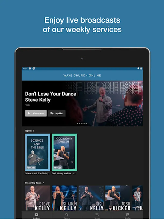 Wave Online provides a new way to watch and enjoy faith-based content from our Wave Church team. Enjoy live broadcasts from Devoted and Wave Conference with exclusive behind-the-scenes content, podcasts, sermons from our preaching team and live streams of our weekly services. Wave Online is your opportunity to have access to all that we do as a church!