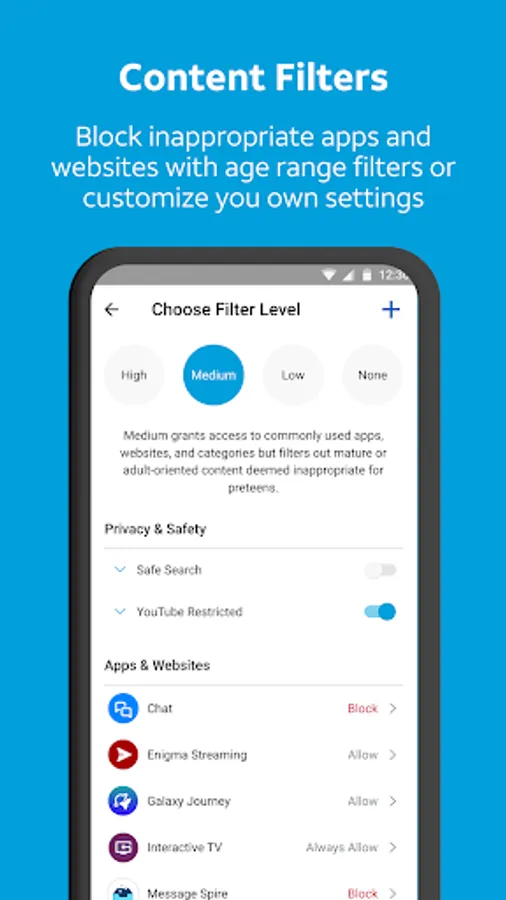 Welcome to the updated AT&T Secure Family®, a locator & parental controls app to help parents or guardians protect their children by offering real-time location tracking with safety alerts, screen time control, content blocker, website & app usage tracker, and ability to find a lost phone. Secure Family is for AT&T Wireless customers.