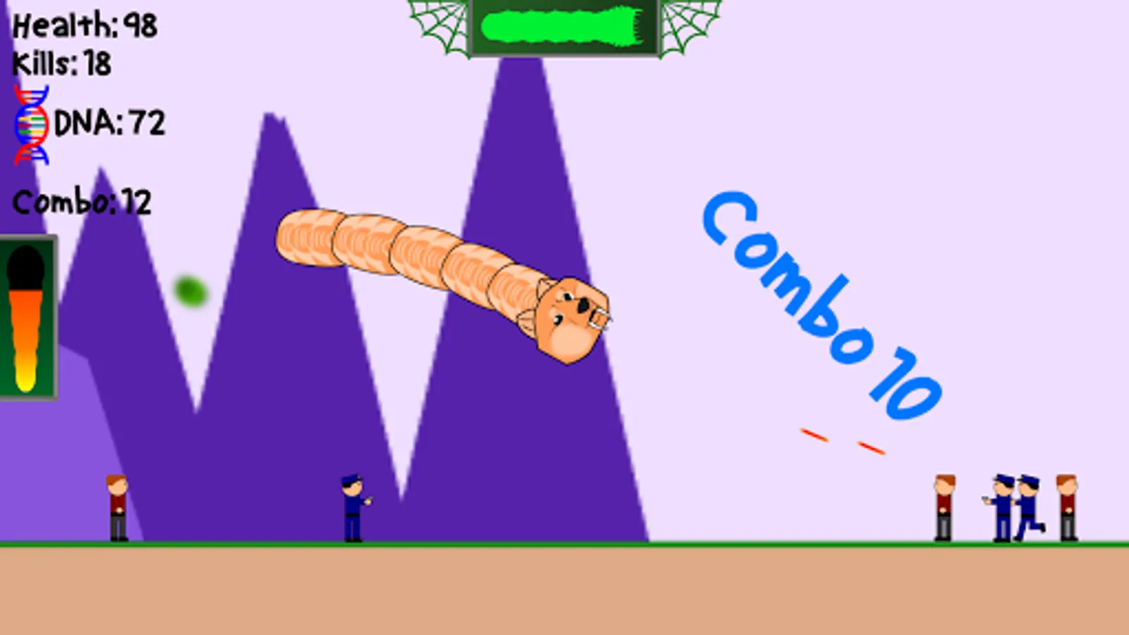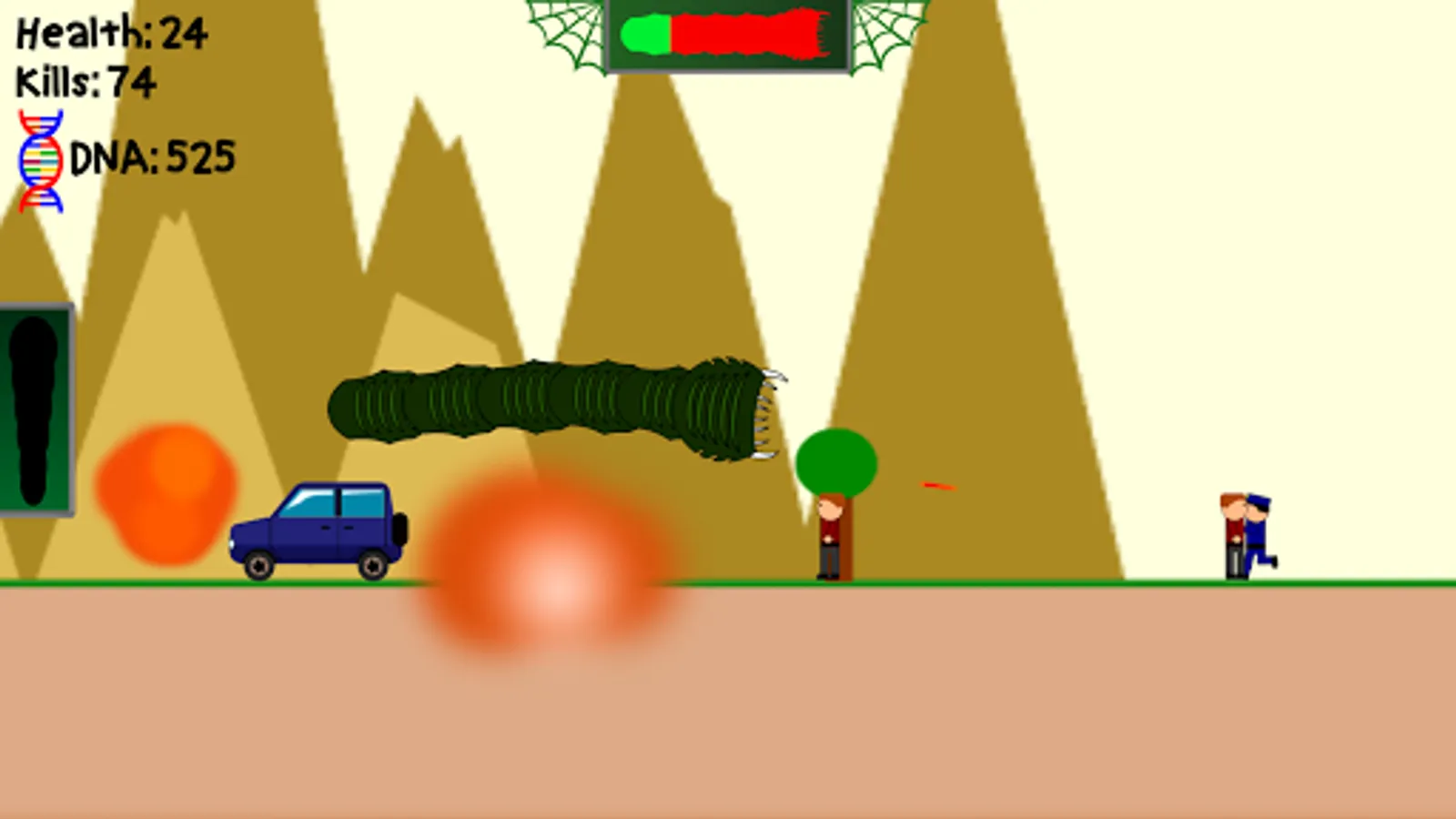 Take control over powerful Earth Monster and destroy everything that is above the ground. People will try to stop you with guns, bombs mines and heavy vehicles.