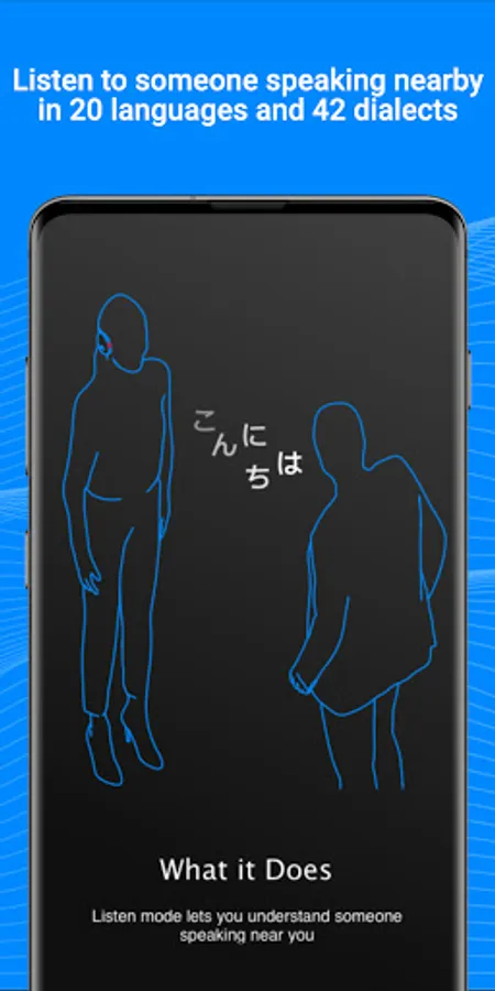 • Listen - As an interpreter, Ambassador actively listens for someone speaking near you (within 8 feet / 2.5 meters) and translates their speech into your native language.