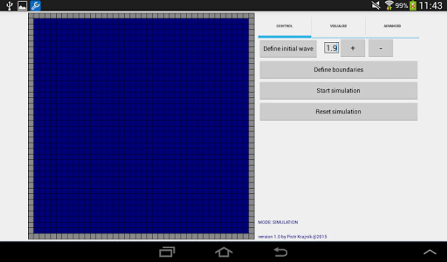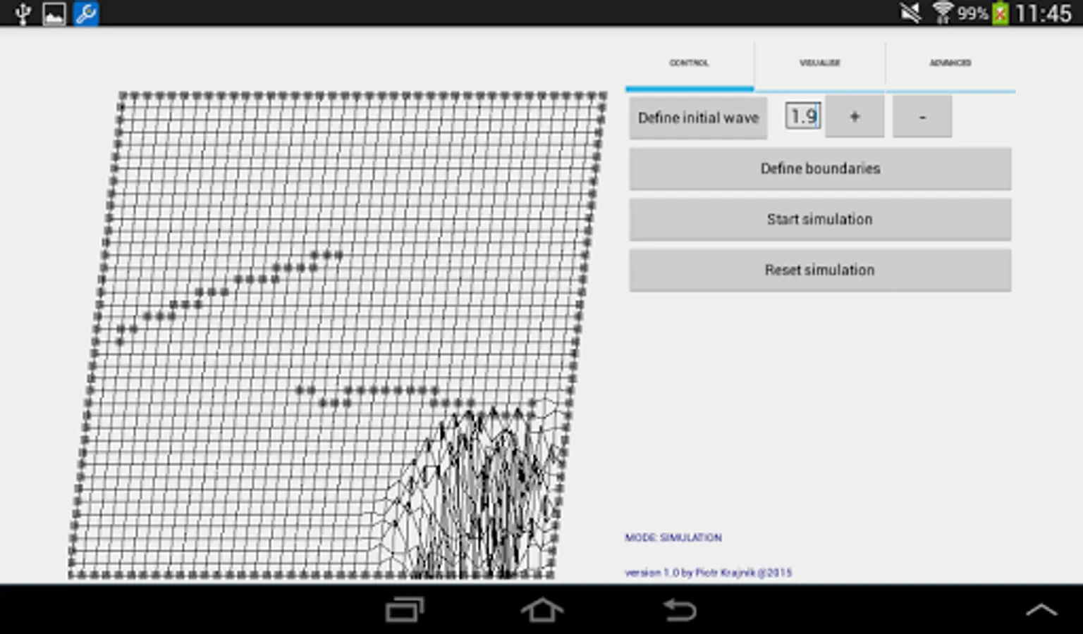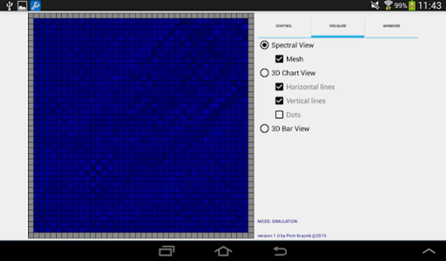 During simulation You may choose between three ways of visualization (Visualise tab):