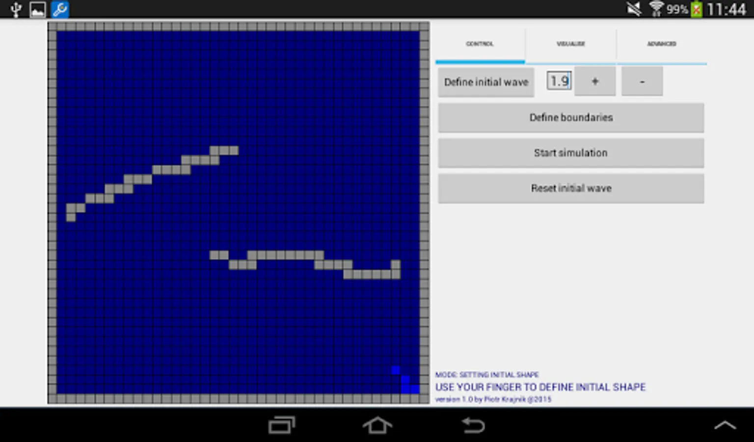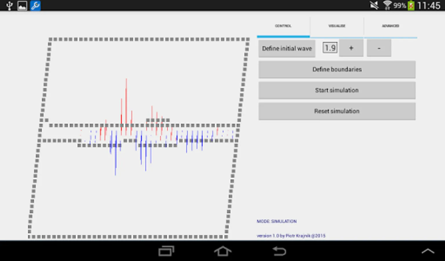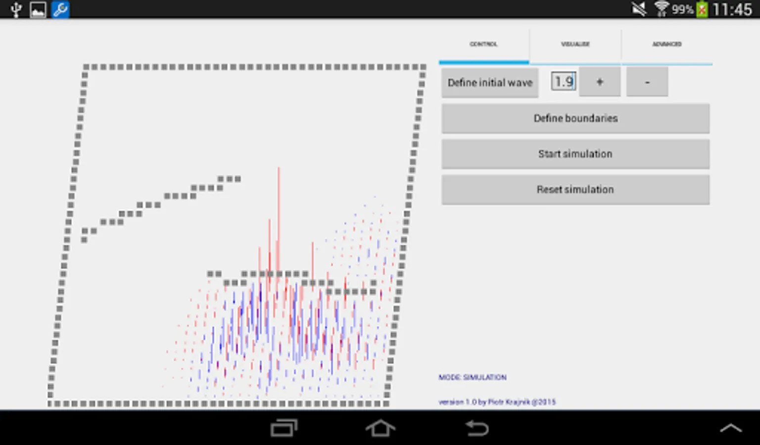 During simulation You may choose between three ways of visualization (Visualise tab):