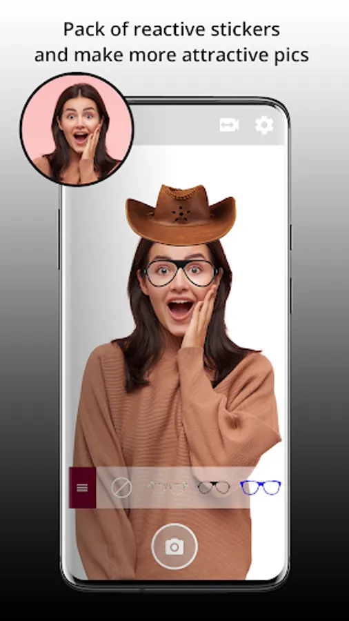 - Face Sticker - Add face stickers (hats, glasses, moustaches etc.) to your selfie.