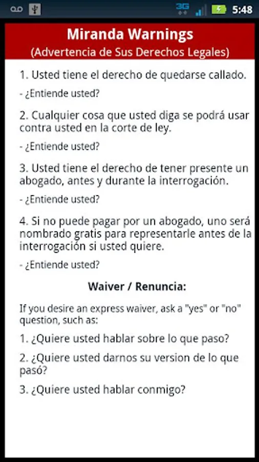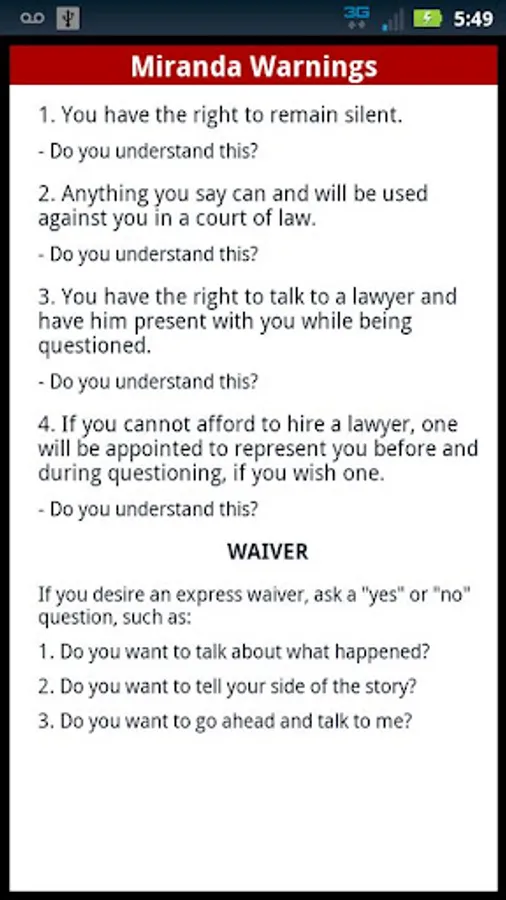 Miranda Warnings / Rights Screenshots