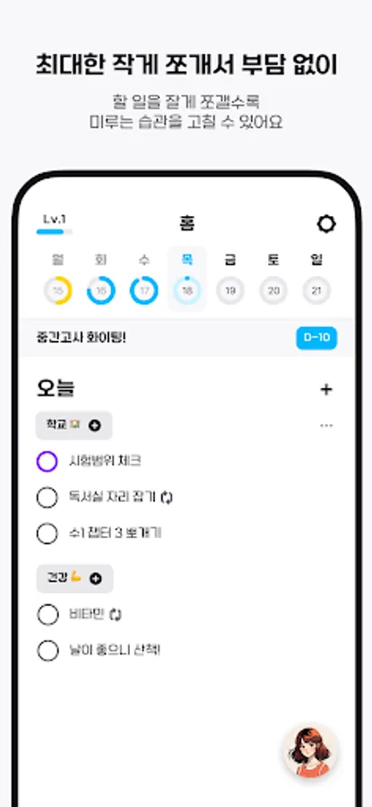 - Mirumi helps you focus on what you need to do today through a routine that registers your tasks every morning and completes them by evening.