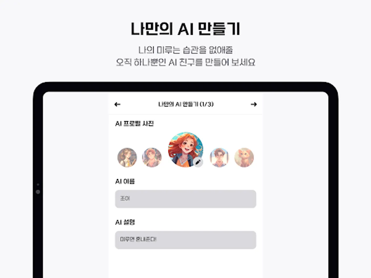 - You can choose the most helpful AI friend from among Lee Rumi who cheers you on like a friend, James who instills passion like a trainer, and Alphago who is cold-hearted and cold.
