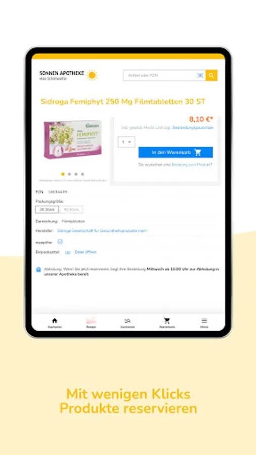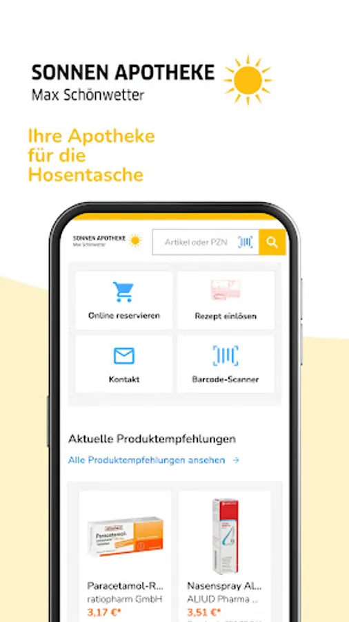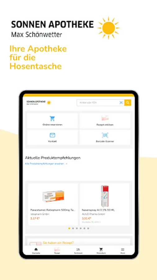 The WAVE Sonnenapotheke Würzburg for your pocket: Order (e-)prescriptions and medicines easily online.
