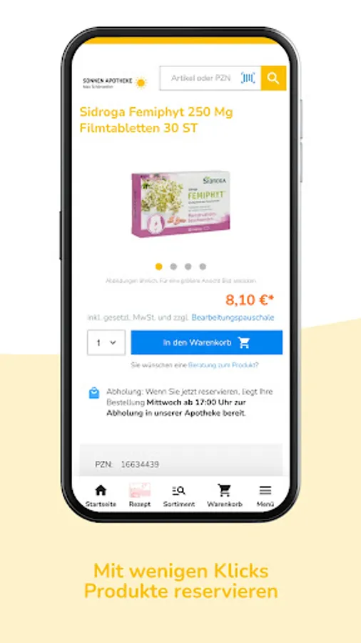 Please note that we are obliged to provide pharmaceutical advice for products that are sold in pharmacies. The consultation takes place either when you pick it up at our pharmacy, when it is handed over to you at home or by telephone.
