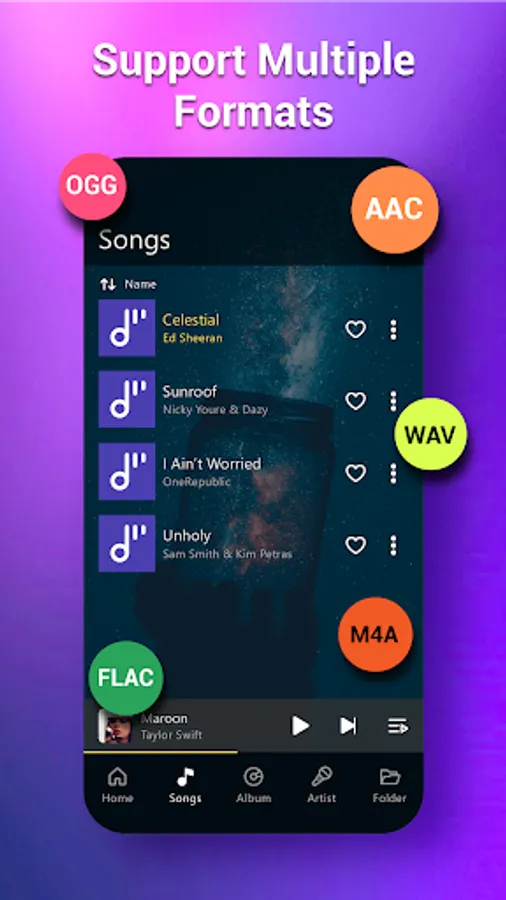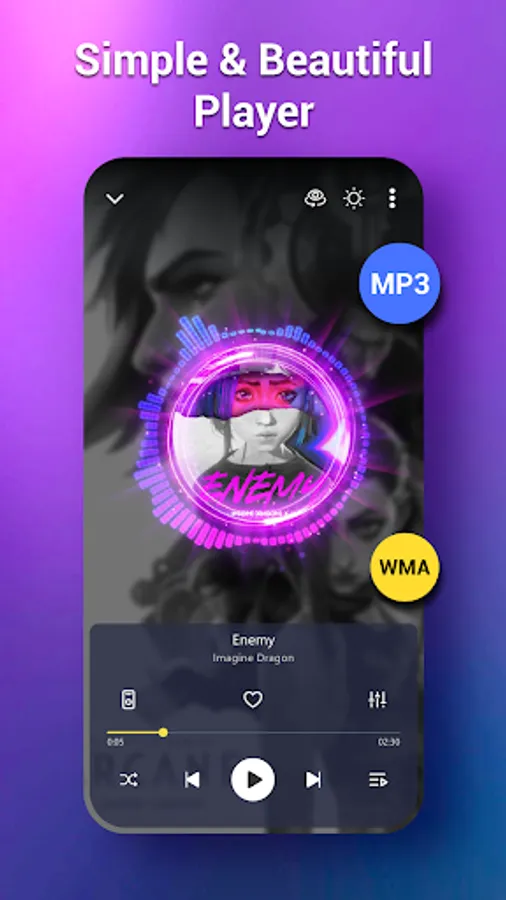 Free Music Offline plays all major music formats like MP3, WAV PCM, AAC, AMR, ... Moreover, thanks to Audio Visualizer - Music Player +, you can listen to music anytime, anywhere without a WIFI connection.