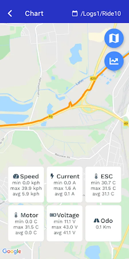 Log telemetry data such as Voltage, Speed, Duty Cycle...