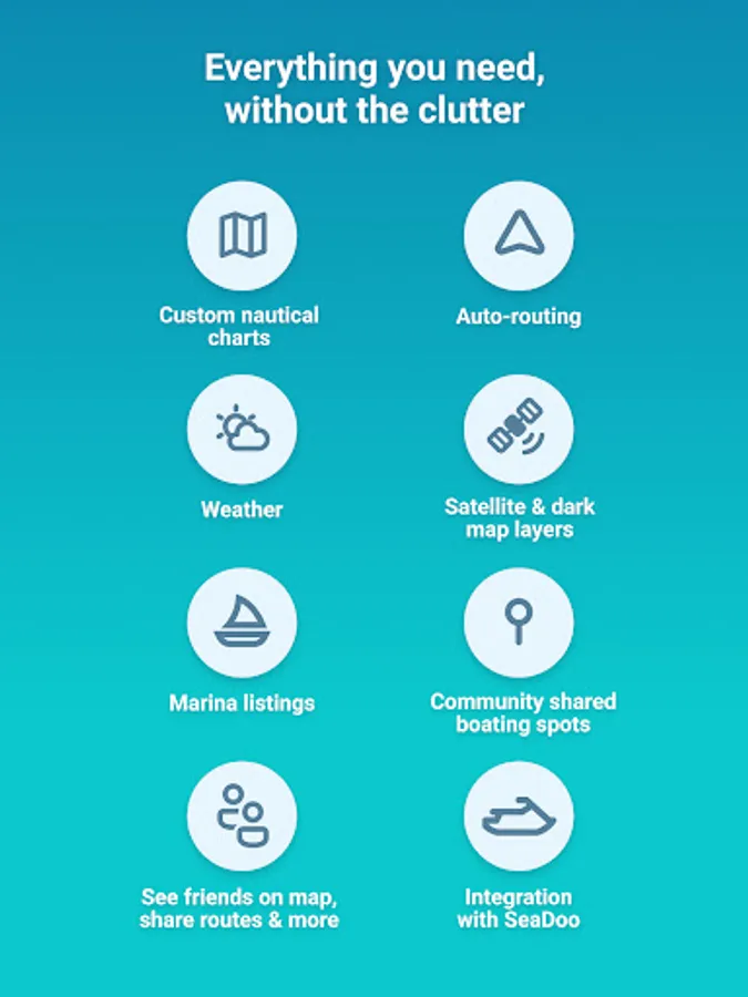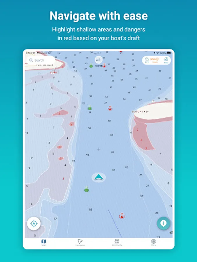 Forget those overcrowded and confusing boat maps and marine gps apps, with Wavve Boating GPS, it’s as easy as staying in the blue, and avoiding the red.