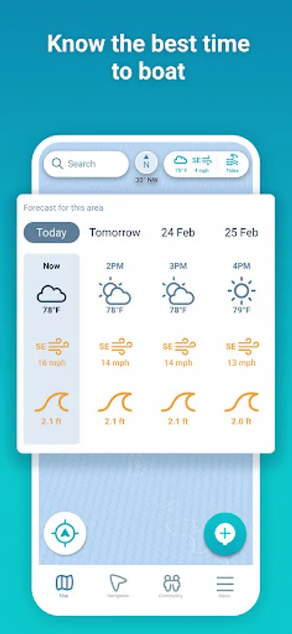 Stay a step ahead of the storm with our marine weather tool. Use the weather tab to view a 7-day marine weather forecast with everything you need to know down to the hour, including weather conditions, temperature, wind speed /direction, and wave heights.