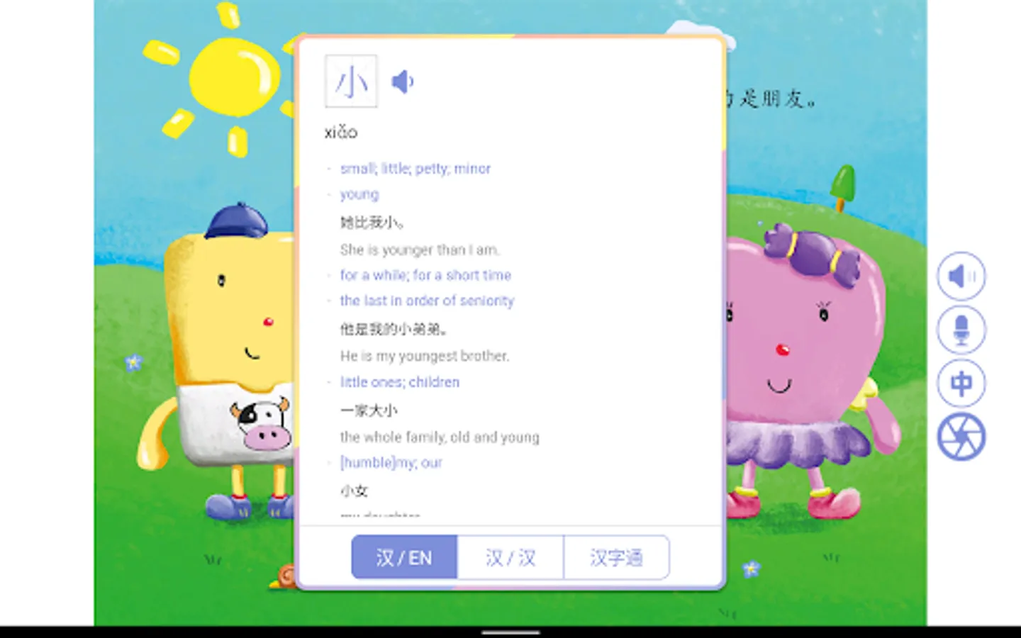 Super easy to use and comes with tools like Chinese-English dictionary, Chinese-Chinese dictionary, Chinese characters stroke animation, Chinese characters etymology and many others. These features help readers to quickly grasp the pronunciation, writing and definition of Chinese characters and sentences in the stories.