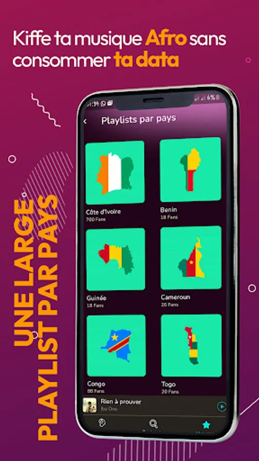 1 million and more music made in Ivory Coast but also Cameroon, Burkina Faso, Mali, ... highlighted in all sections of the application. Never has a platform pushed local talent so far: Offbeat Coupé, Zouglou, Rap Ivoire and other styles of music are represented to appreciate all the moments.