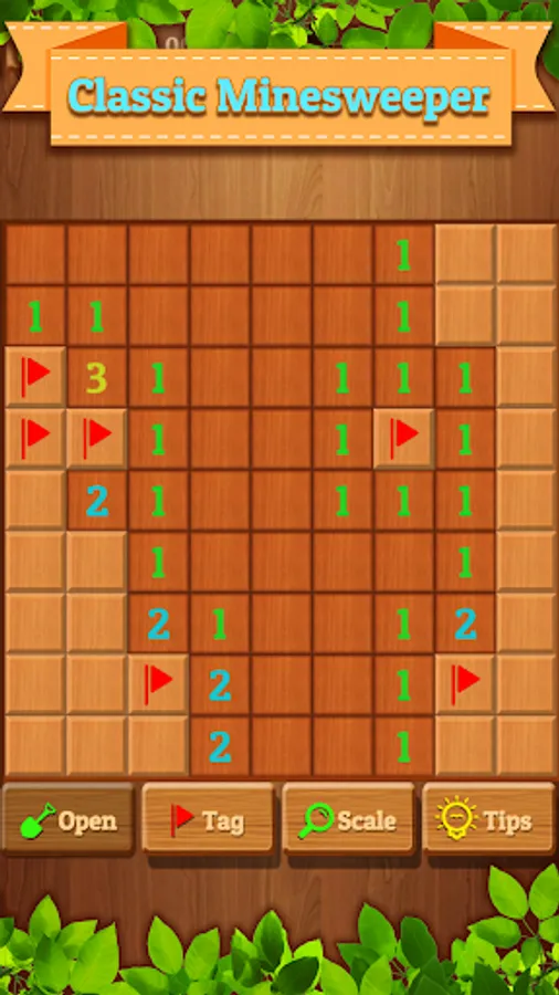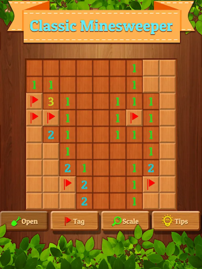 - The classic game minesweeper matches the wooden block style, which is more interesting.