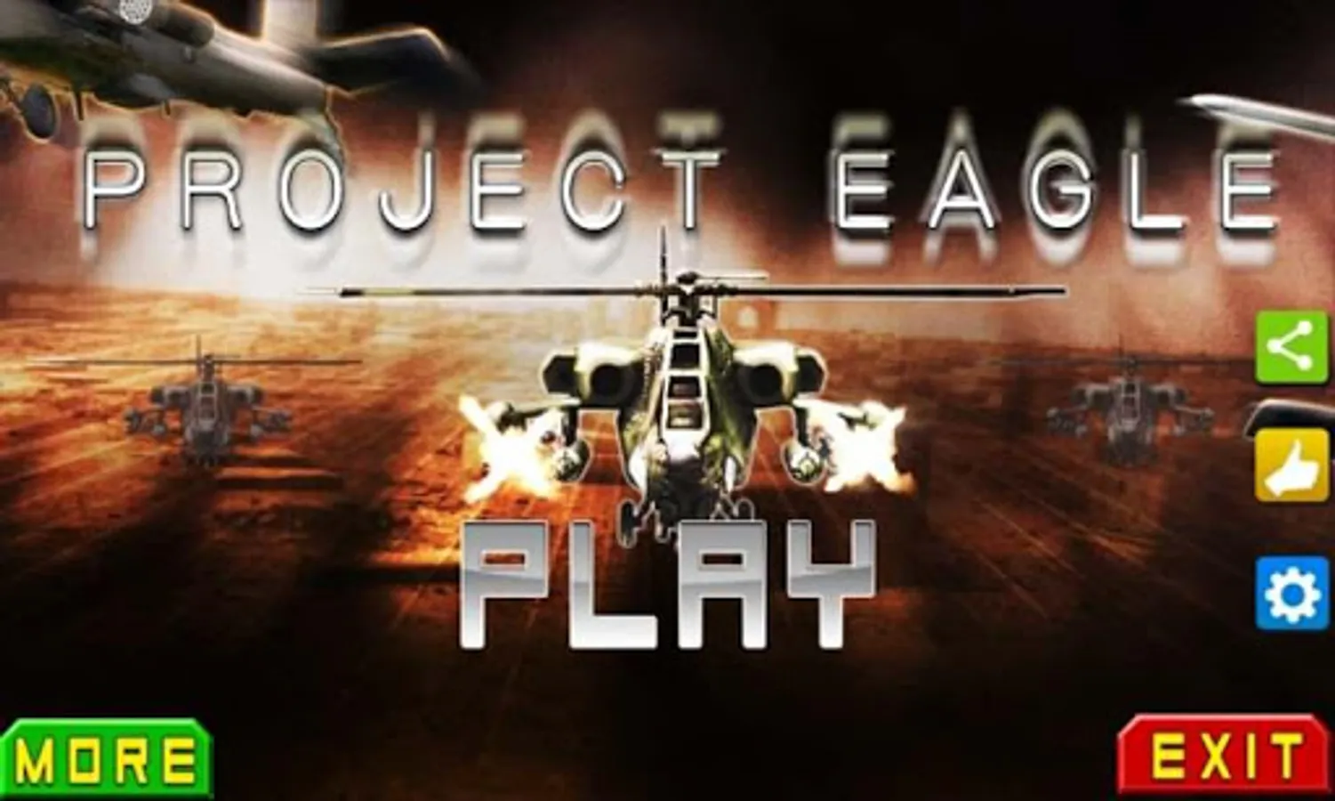 “Project Eagle” is a defense plan of country X which is released in 2046 to defense the terrorist organizations and zombie attack .In 2046 a World War break out throughout the world,communications between all countriesis are interrupted , the corpses lie all over the world for a long time but nobody to clean-up , until one day Evil Dead happened. All the bodies become bloody zombies. A terrorist organization use zombie to launch an massive attack against country X . Country X releases " Project Eagle " plan timely to deal with the risk of terrorist attacks. At national borders ,tall defensive structures are built o resist the invasion and proliferation of zombie . Fight and fly elites are sent to fly over the defensive structures to exchange information with the Allies and seek for help. But,there are already some zombies climb over the defensive structures. So elites must start off immediately , destroy zombies ,take the important intelligence to the Allies ! "