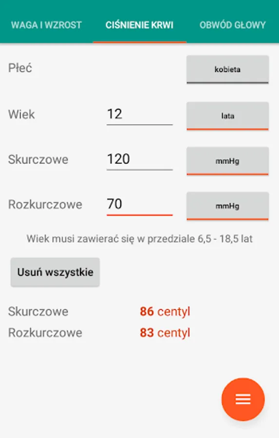 Percentiles of systolic and diastolic blood pressure are calculated on the basis of selected data: