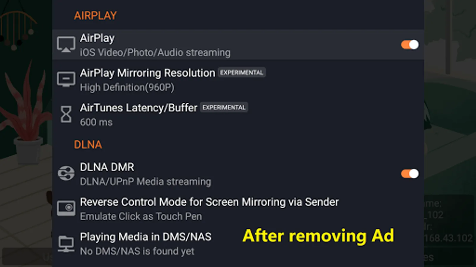 This is the free version of 'AirPin(PRO)'. It contains several seconds Banner Ad at beginning of streaming/mirroring. You can remove the Ad and unlock all the features by upgrading to the PRO version via In-App purchase.