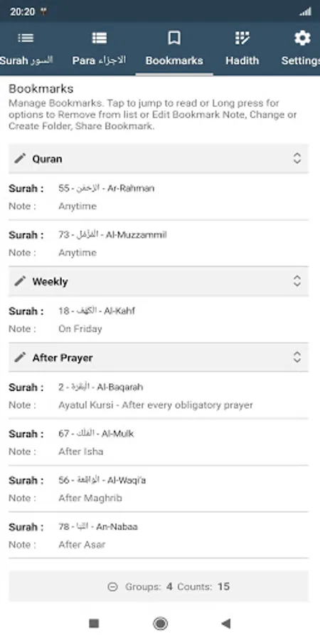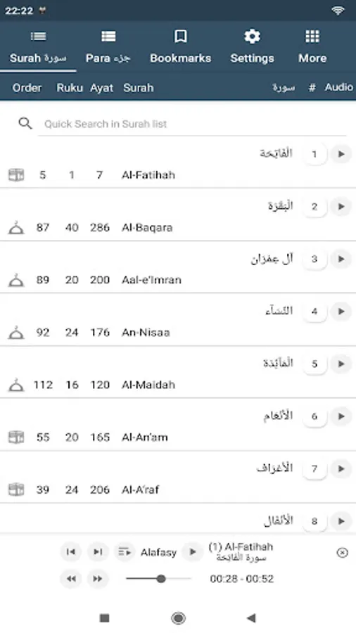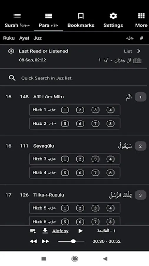 ● Quran - Surah, Juz, Hizb and Para
