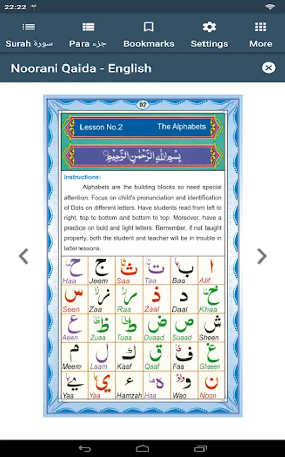 o Color coded Qaida for Children with multiple lessons and exercise