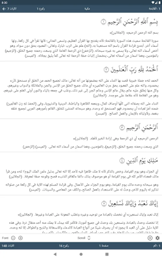 o العربية - تفسير المیسر- الجلالين