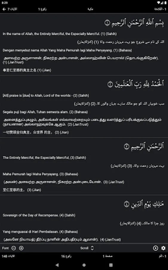 It's free from any advertisement with selection of multiple Quran text script, fonts, audio, translations, scroll, search and multiple feature.