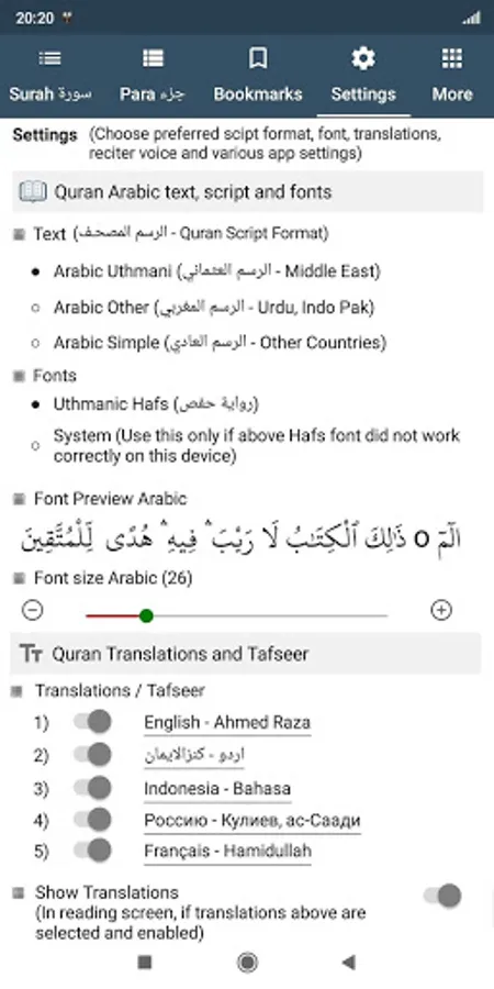 o Multiple translations in English, Urdu, Indonesian, French, Russian, German, Turkish, Spanish and other languages