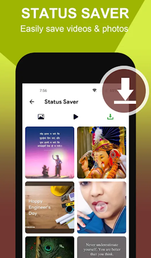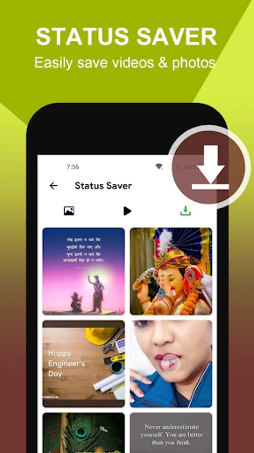 All Quotes app and Status app is the best story saver app for WhatsApp. Status downloader can easily save stories of your friends on WhatsApp without even asking them to send the Images or Video.