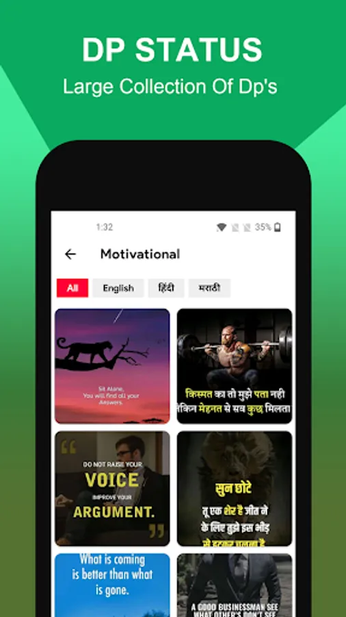 Everybody nowadays uploads Dp’s Status on social apps like WhatsApp, Facebook, Instagram etc. where they need to get special attention from the viewers so All Quotes and Status app can help them easily find attractive Dp’s Status for the social media posts.