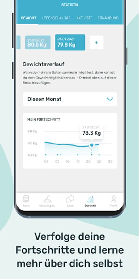▶ ANALYZE YOUR PROGRESS and WEIGHT DEVELOPMENT directly in the app and receive feedback and tips tailored to you personally.