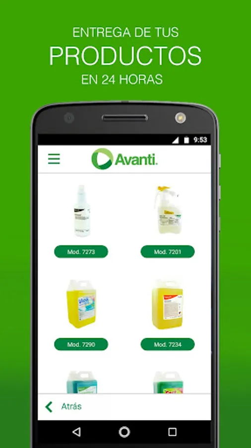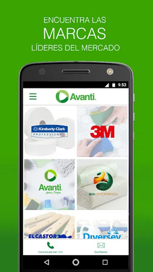 The Avanti application is a catalog of all our products, where you can browse through our categories Paper, Garbage Bags, Food service, Cleaning Supplies, Cleaning Chemicals, Flavors, Insecticides, Security, Rugs, Wypers and Dispatchers. You will find its detailed description, as well as the model number so that you can place your order via phone or email.